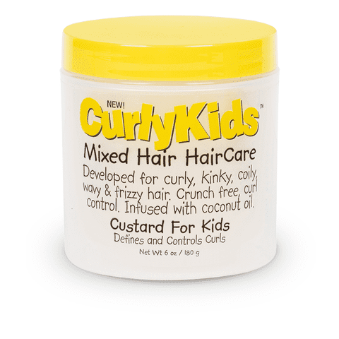 Curly Kids has been developed for curly, kinky, coily and frizzy hair textures. This incrediblecustard for kids will help define and control your kids curls! Create shiny, buoncy curls with this lightweight custard for kids. sulfate and paraben free crunch free curl control infused with coconut oil defines and controls curls