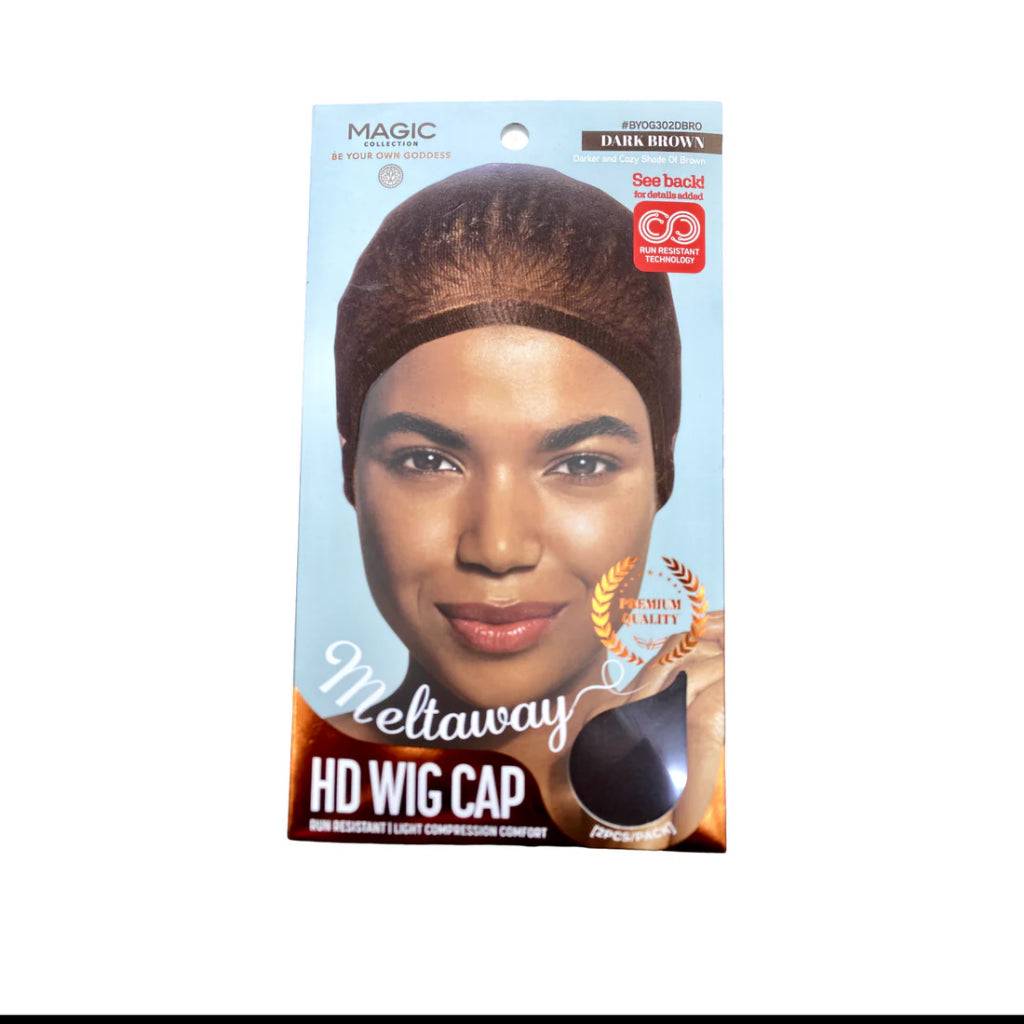 Magic Collection Melt Away HD Wig Cap Dark Brown BYOG302DBRO is a high-definition, ultra-thin wig cap designed to provide a seamless and natural look under wigs. This wig cap in a rich dark brown shade ensures your wig sits comfortably and securely while maintaining a natural scalp appearance. It's the ideal choice for anyone looking to enhance the longevity and fit of their wigs.