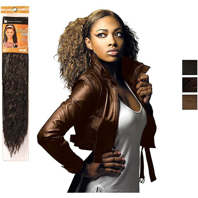 Sensationnel Synthetic Ponytail Instant Pony Wrap in Kinky Straight 24" color 2 is the perfect accessory for achieving a stylish and voluminous ponytail with ease. Made from high-quality synthetic fibers, this ponytail wrap mimics the natural texture of kinky straight hair, providing a soft, realistic finish. At 24 inches long, it adds significant length and volume to your hairstyle, making it ideal for various looks. The rich color 2, a deep dark brown, blends seamlessly with a variety of hair types, enhancing your overall appearance with sophistication.