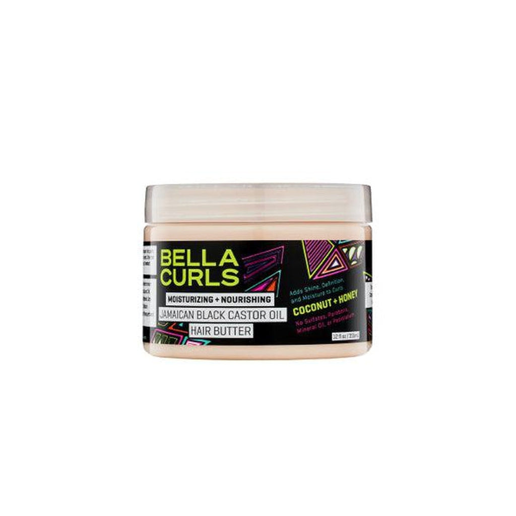 Bella Curls Moisturizing + Nourishing Jamaican Black Castor Oil Hair Butter is a luxurious hair treatment available in a 12 oz container, designed to provide moisture, nourishment, and protection to all hair types, especially curly and textured hair.