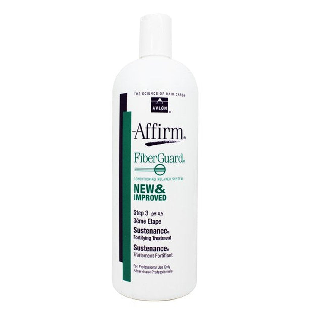 Avlon Affirm FiberGuard Sustenance Fortifying Treatment is an advanced, high performance conditioner that contains Fiber Strengthening Complex (FSC), a revolutionary conditioning complex exclusive to Avlon that penetrates deep within the hair shaft while cuticles are open immediately after rinsing of the relaxer. What it does: Lipid Replenishing Molecules (LRMs), enter the hair fiber to replace natural shine properties depleted by chemical processing. Special polymers realign, seal and smooth hair cuticles as it normalizes hair. Micro-Molecular proteins and humectants penetrate deep within the hair shaft to help repair fiber damage while moisturizing and fortifying hair fiber. What else you need to know: Works to repair and strengthen damaged hair fibers. Recommended for use as an Intensive Conditioning Treatment. Benefits: Strengthens newly relaxed hair while replenishing lost moisture Helps hair resist breakage and shedding. Minimizes surface porosity. Adds fullness and body to hair. Detangles hair easily for wet and dry combing. Leaves hair silky and shiny.