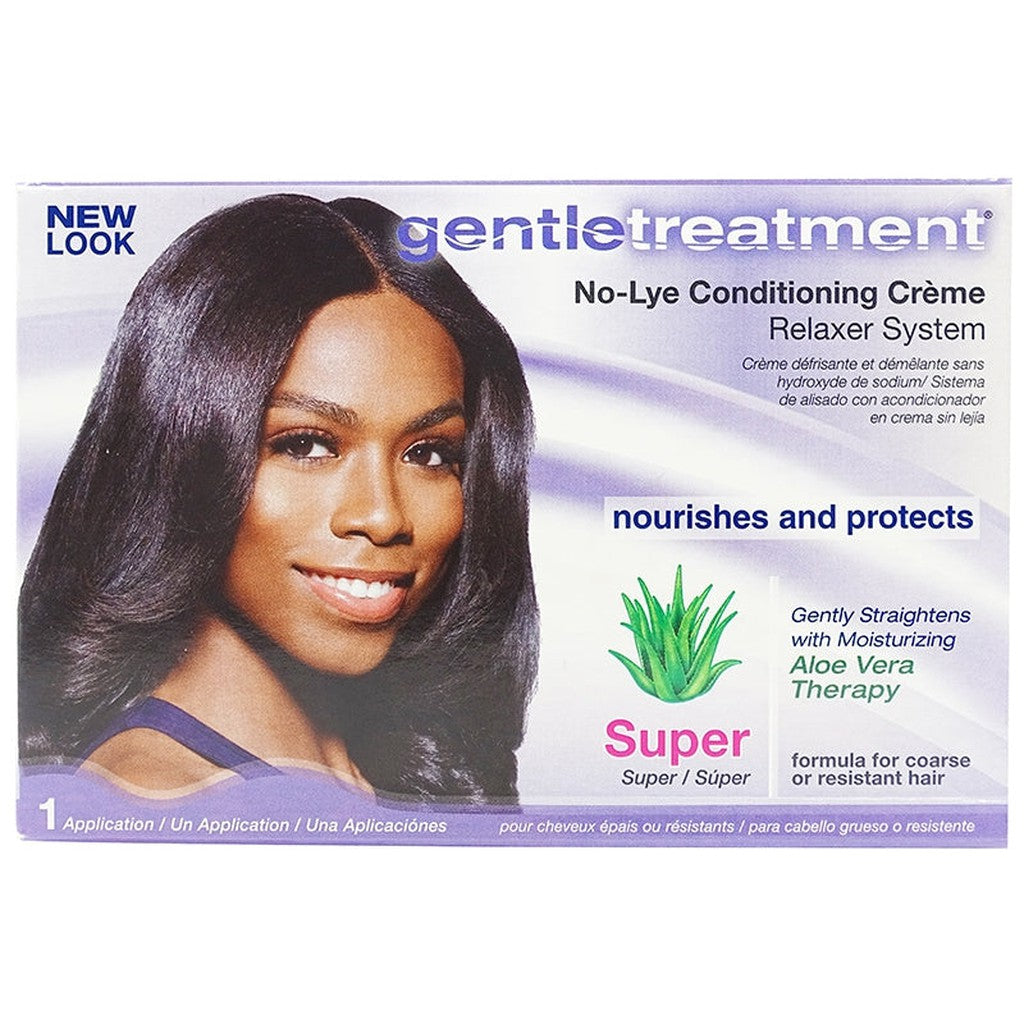 Achieve salon-quality, super-straight locks with Gentle Treatment's No-Lye Conditioning Creme Relaxer System in Super strength. Specially formulated for coarse or resistant hair, this relaxer system delivers maximum straightening power while infusing your hair with vital nutrients to promote health and shine.