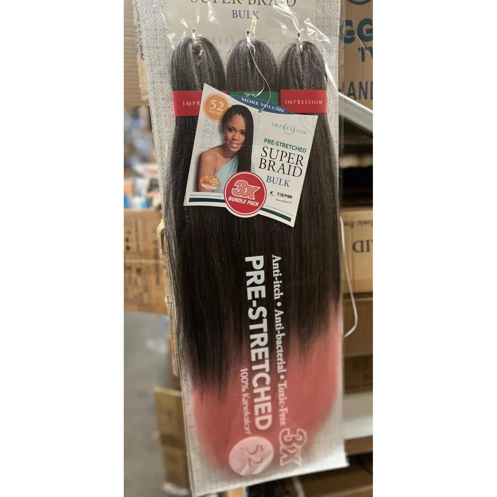 Step out in style with the Impression 3XPS Super Braid in the stunning 52-inch length and Color T1BPK. This unique braid features a gradient from natural black to a vibrant pink, offering a versatile and eye-catching look. Made from premium synthetic fibers, this braid offers both durability and comfort, opening up a world of versatile and intricate styling options.