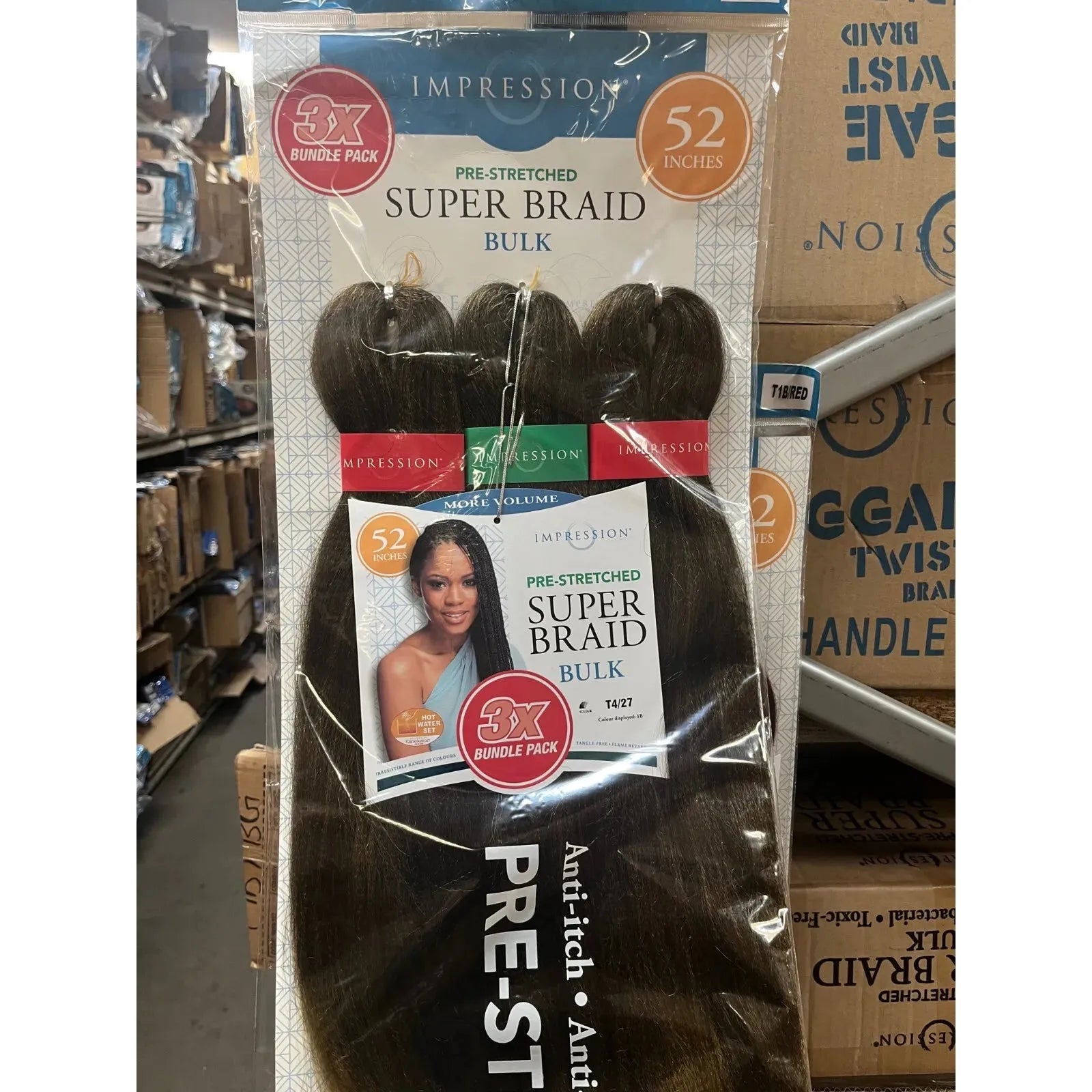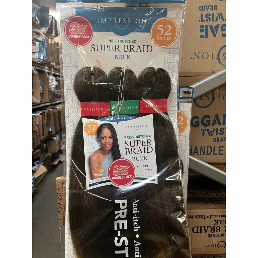 Elevate your braiding game with Impression 3XPS Super Braid in a versatile 52-inch length, now available in the sophisticated T427 color. This unique multi-tonal braid blends shades of dark brown, medium brown, and light blonde for a look that's as stylish as it is natural. Made with premium synthetic fibers, the braid is durable and comfortable, allowing you to achieve the most intricate styles effortlessly.